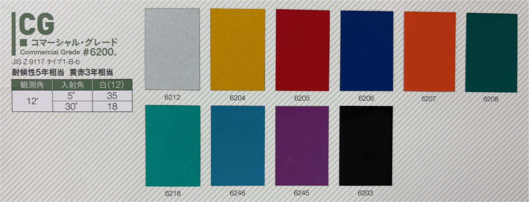 | 製品名: | 封入レンズ型 再帰反射シート(CG)45.7M / 耐候性5年相当(黄赤3年相当) |