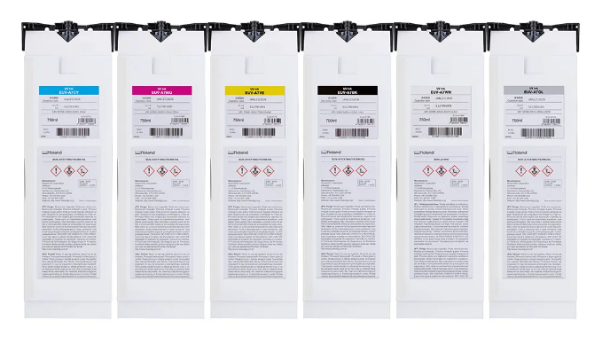 Roland.DG.社(ローランド.デイ.ジー社)製UVプリンター用の純正インクです。 EUV-A7インクです。 UV(紫外線)照射で硬化する特殊なインクで、紙やフィルム、樹脂や皮革など多様な素材に印刷できるVersaUV専用のインクです。 EUV-Aインクは、歴代UV-LEDフラットベッドプリンターのインクの中で最大の柔軟性とアクリル素材への優れた密着性を持つ新開発のUVインクです。 伸長率270%※の柔軟性により、本革製のバッグや財布、合皮素材のシューズなど、柔らかく、折り曲げて使用することの多いアイテムでも、ひび割れが生じることなく、美しい仕上がりを長期間維持することができます。 ※クリアインクを除く また、より高い伸縮性が求められる熱成形品のデザイン試作や生産にもご利用いただけます。 各種プラスチックシートへ直接印刷を施し、熱成形することで、パッケージや自動車内装部品、電子機器などの外装の試作にもオンデマンドに対応。 ダイレクト印刷では印刷が難しいガラスや金属などの素材や曲面、凹凸がある複雑な形状のアイテムへの加飾を実現します。 さらに、優れた密着性により、アクリル素材へのプライマーレス印刷も可能に。 これまで、アクリル素材への印刷に必要だったプライマーの印刷工程が不要なため、従来モデルと比較して、約71%印刷時間を短縮※。 店舗のサインやディスプレイ、キーホルダーなどさまざまなアクリルアイテムを短時間でより多く製作することができます。 ※MO-240とLEF2-300のA3印刷時の比較 熱成形品やアクリル素材への印刷時に下地として使用することが多いホワイトインクも、高い濃度と隠蔽性を実現。 材料の色に左右されず、鮮やかで正確な色表現が行えます。 下記のUVインクジェットプリンターにお使い頂けます。 ■VersaUV VersaOBJECT(MO-240、MO-180) 【主な仕様】 製品名:紫外線硬化インク「EUV-Aインク」 容量:750ml 品番:EUV-A7CY(シアン)、EUV-A7MG(マゼンタ)、EUV-A7YE(イエロー)、EUV-A7BK(ブラック)、EUV-A7WH(ホワイト)、EUV-A7GL(グロス) 対応プリンター:VersaOBJECT MO-240/MO-180 現在ご使用のプリンターのインクの種類をご確認頂きました上でご購入下さい。