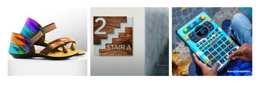 ダイレクト印刷では印刷が難しいガラスや金属などの素材や曲面、凹凸がある複雑な形状のアイテムへの加飾を実現します。
