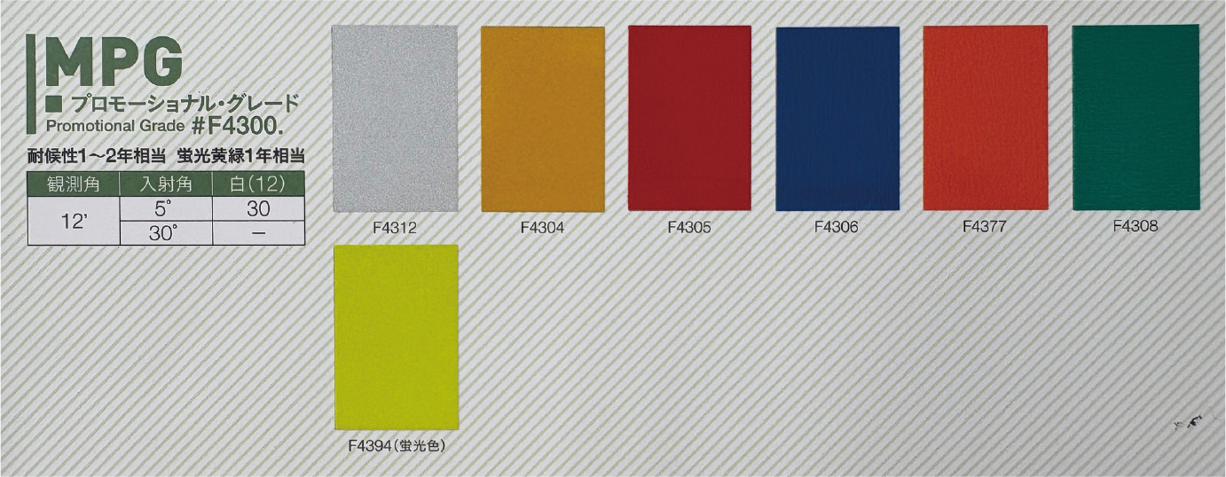 | 製品名: | 封入レンズ型 再帰反射シート(MPG) 1220mm×45.7M / 屋外耐候1~2年相当・蛍光黄緑1年相当 |