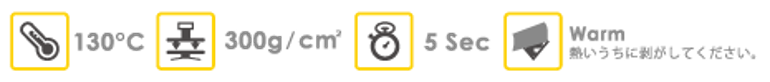 ※ 上記の設定は目安です。素材・プレス機、その他の環境により設定が異なります。