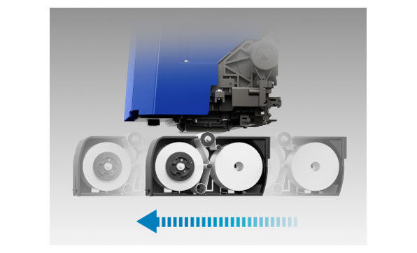 布製のワイパーでプリントヘッドを清掃することでヘッドを清潔に保ち、安定したプリント品質を維持しています。布製のワイパーはロール式の消耗品なので、交換するだけで日々のワイパー清掃は必要ありません。