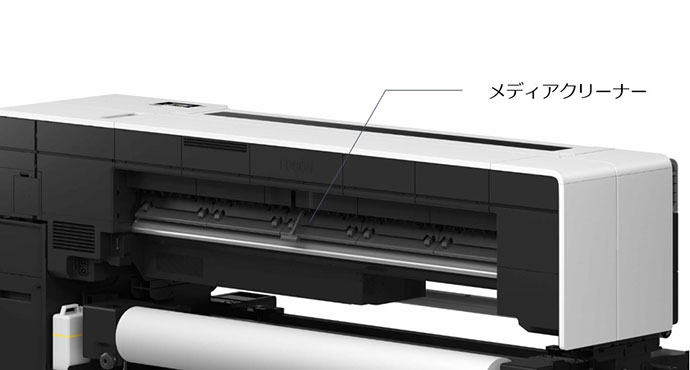 プリンター背面のメディアクリーナーがドット抜けの要因となるゴミ、プリンター内部への埃の侵入を抑え、安定したプリント品質を保ちます。