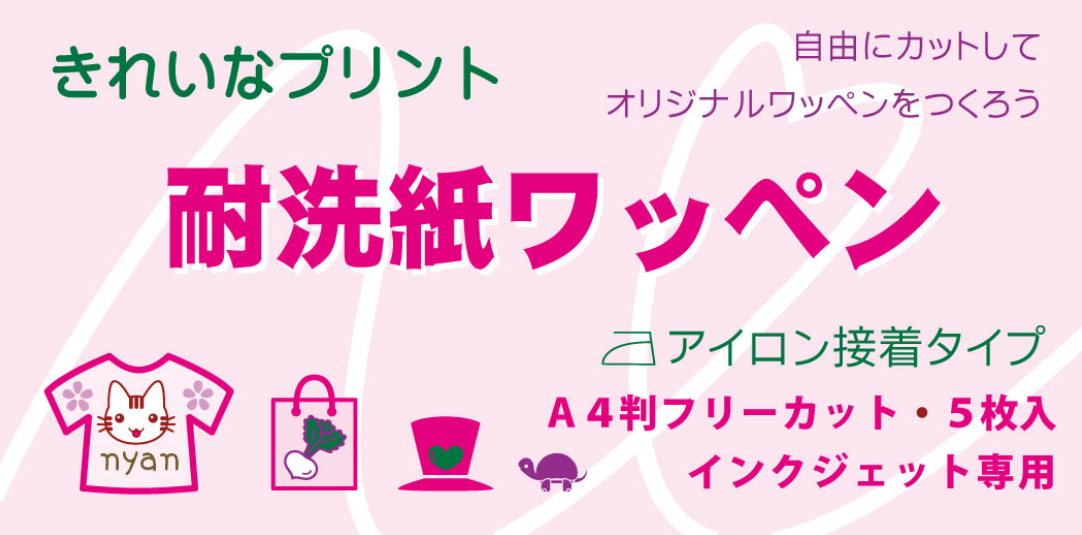 | 製品名: | 水性染料・顔料インク用 耐洗紙ワッペン / サイズ:A4(210mm×297mm) |